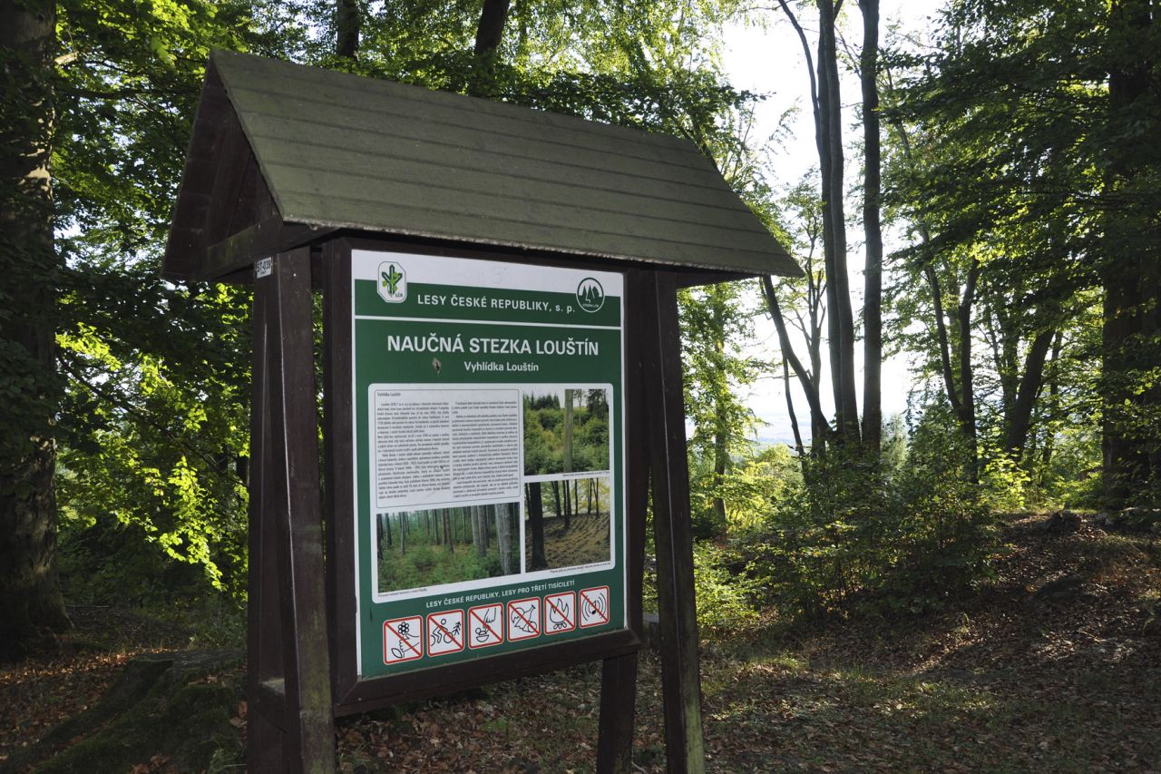 Naučný panel o louštínských lesích.